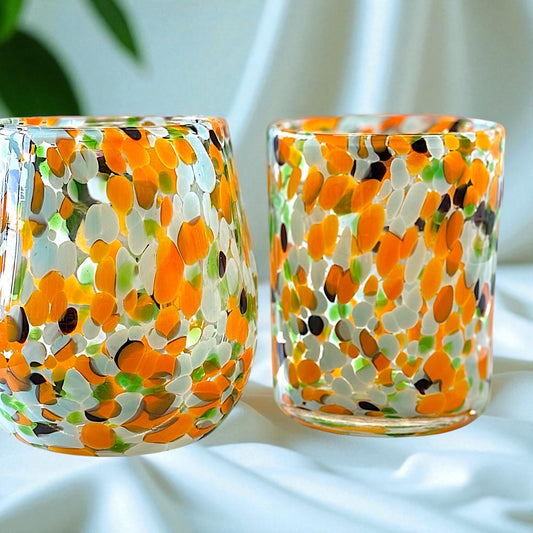 Hand-Blown Extra Large Glass Diffuser Bottle With Stopper - Orange and Turquoise Speckled Design