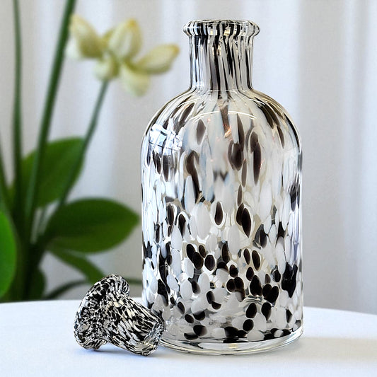 Stunning Extra Large Hand-Blown Glass Reed Diffuser Bottle and Lid - Black and White