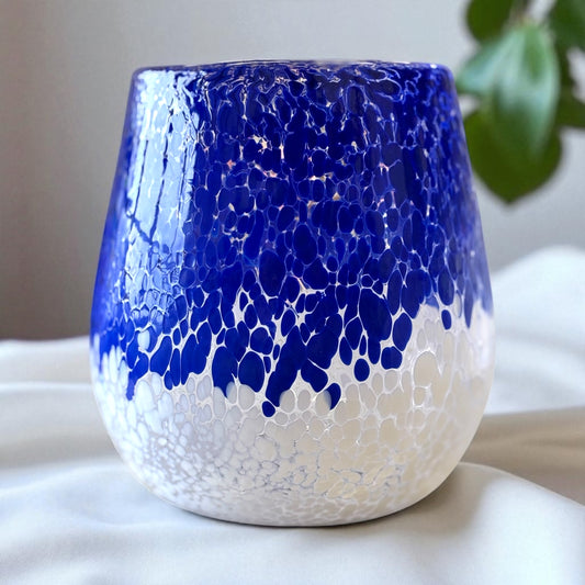 Stunning Large Hand-Blown Candle Glass - (unfilled) Blue and White