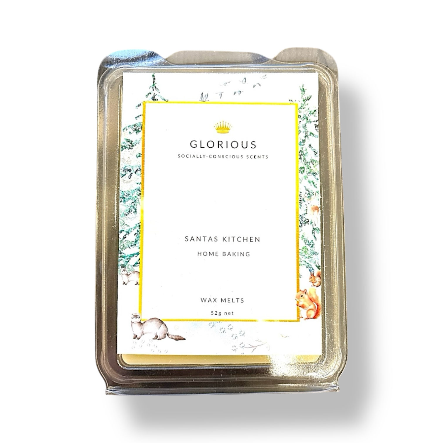 Perfect for creating the ideal holiday ambiance or as a thoughtful gift for loved ones, 'Santa's Kitchen' is designed to evoke cherished memories and bring the joy of the season into your home. Indulge in the sweet aroma of freshly baked treats and let the enchanting scent of our luxurious wax melts transport you to a winter wonderland.