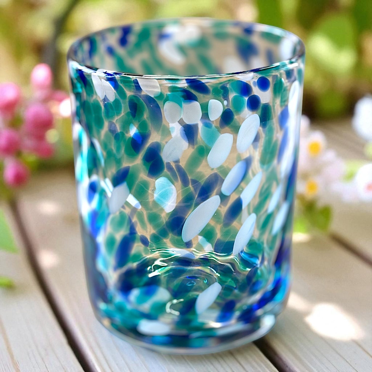 Bring coastal elegance into your home with this hand-blown glass candle vessel featuring a refreshing splash of ocean blue, turquoise, deep green, and crisp white. Each 950ml cylindrical vessel is artisan-made, creating unique patterns that capture the beauty of the sea. Perfect for luxury candle making, it combines durability with artistic charm. Supplied unfilled, ready for your bespoke fragrance.
