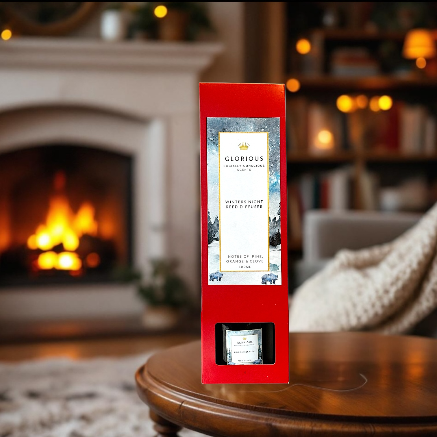 Immerse your home in the timeless magic of Christmas with Winter’s Night — a luxurious reed diffuser by Glorious Scents, crafted to capture the heart of the festive season.